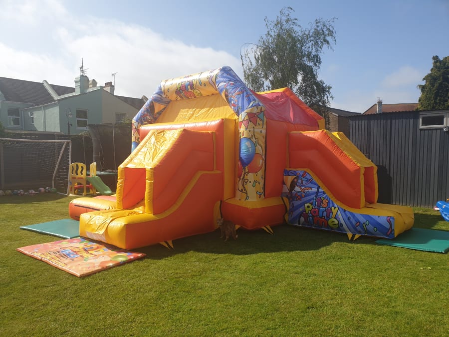 Looking for the perfect addition to your outdoor party? Our 18' x 17' Bouncy Castle Combi Slides is exactly what you need! This double slide bouncy castle promises endless excitement and is perfect for larger gardens. With its unique design and huge size, it's the ultimate attraction for both kids and adults alike. 🏰