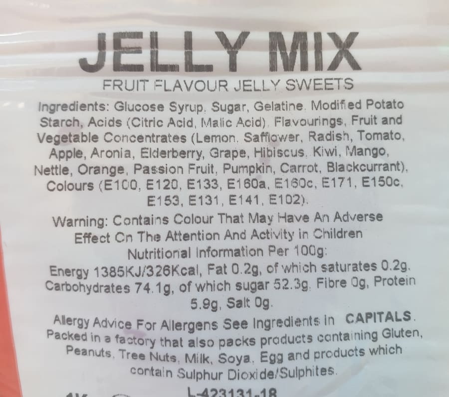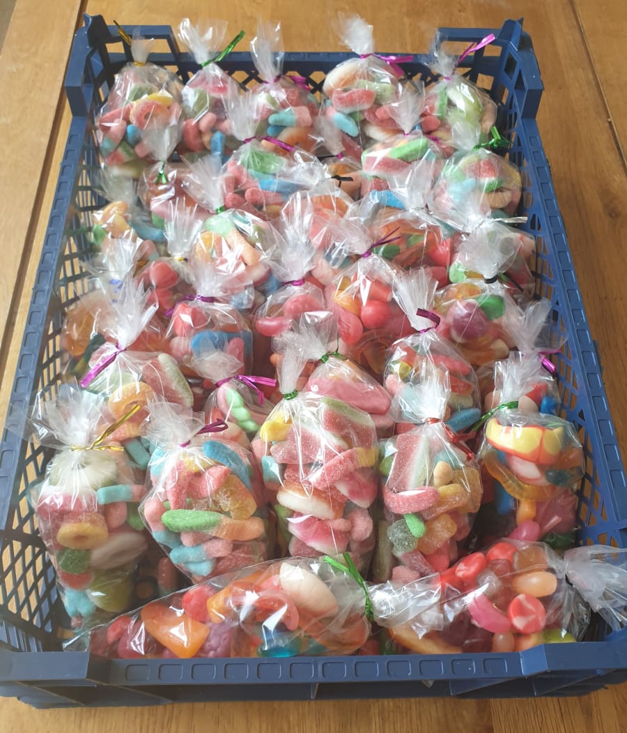 Each one weighs on average 115g and contains a mixture of sweets.